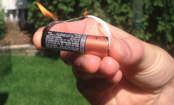 Как добыть огонь из батарейки