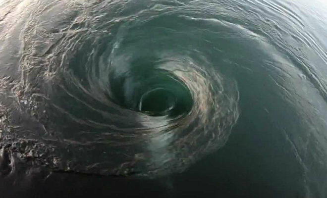 Океан таит немало опасностей. Водовороты выглядят порталами в бездну, а этот смельчак взял камеру и решил собственными глазами посмотреть, что же скрывается под водой.