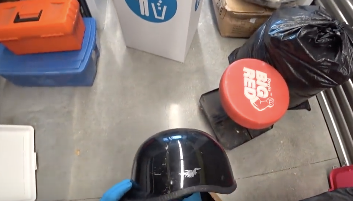 Судя по всему, хозяин вещей бывший полицейский. И любитель мотоциклов — в контейнере сразу несколько брендированных вещей.
