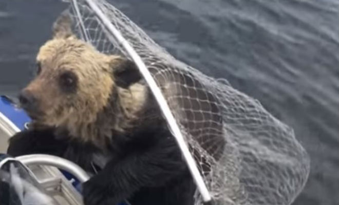 Холодная вода сковала медвежат, а медведица не могла ничего поделать. К счастью, неподалеку проплывала рыбацкая лодка.