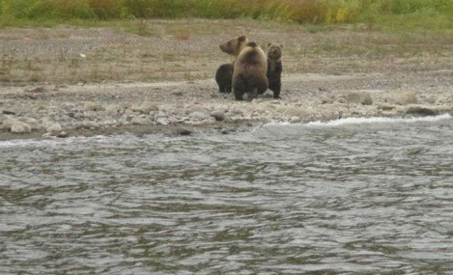 На берегу рыбаков уже ждала медведица. Она тут же забрала медвежат. Но самое интересное ждало рыбаков на следующий день: поутру они обнаружили у палатки свежую рыбу. Так медведица отблагодарила людей!