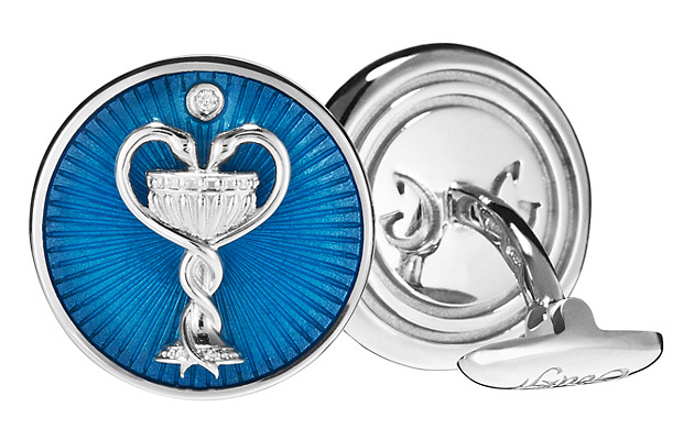 Запонки Gourji изготавлены из серебра 925-й пробы с эмалью и драгоценными камнями. Каждая из них имеет свой индивидуальный номер — всего выпускается 1964 экземпляра.