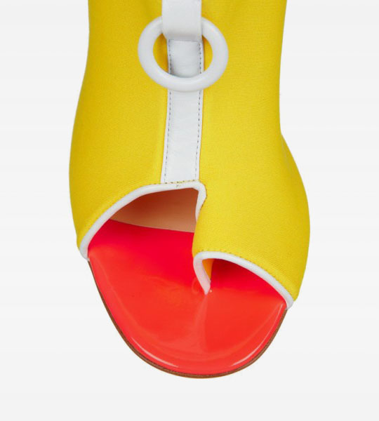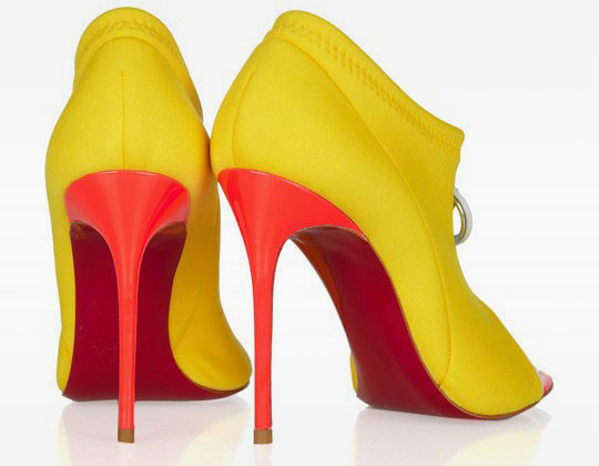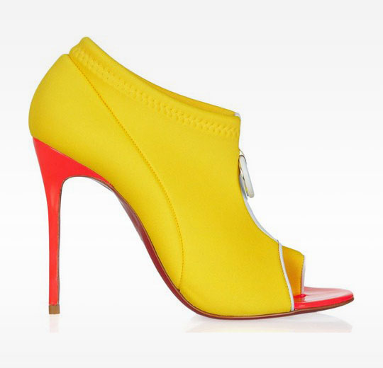 БлогиДругой мир Неоновые ботильоны Arina, 27 Апрель- Ярко-желтые ботильоны с красной шпилькой и открытым носом из весенне-летней коллекции Christian Louboutin. [CUT]