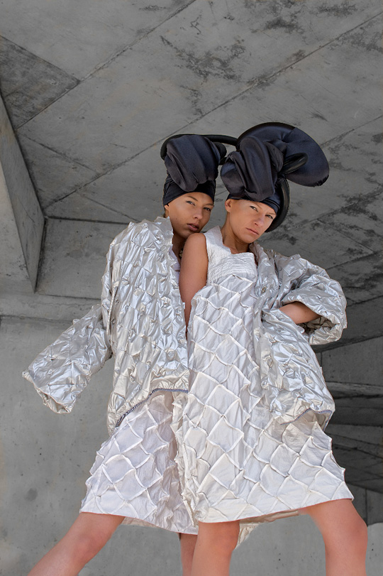 До этого мы работали отдельно, и только с 2008-го года стали сотрудничать. Моя первая коллекция вышла где-то в 2005 году. Она была совсем маленькая, я экспериментировала, пробовала играть с тканями, потом эти вещи начали продаваться, но я продолжала искать, хотелось чего-то серьезного. После мы познакомилась с Агитой, она уже давно работала, у нее были свои клиенты и своя команда. Так что у нас совершенно разный опыт.