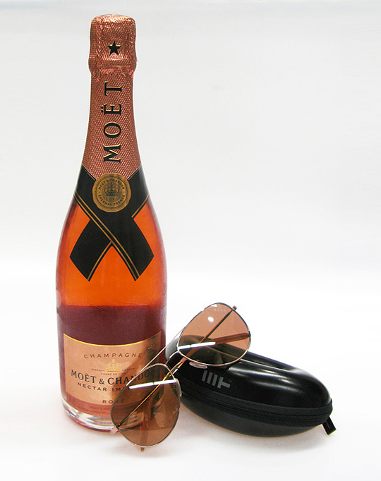 Дом шампанских вин Moët & Chandon совместно с люксовым брендом Mosley Tribes выпустил лимитированную коллекцию солнечных очков Rose. Оправа авиаторов создана на основе модели Raynes от Mosley Tribes. Линзы очков выполнены из минерального стекла, меняющего цвет в зависимости от уровня освещения.