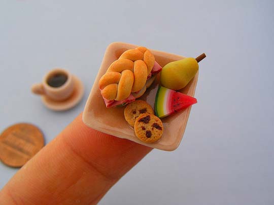 Миниатюрные скульптуры различных блюд, фруктов, овощей и прочей снеди в масштабе 1:12, которые выглядят абсолютно съедобными и при этом умещаются на кончике пальца — дело рук художника из Тель-Авива Шая Аарона (Shay Aaron). Кроме того, он создает точно такие же украшения.