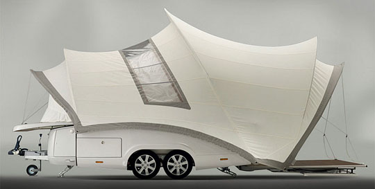 Отдых с палатками совершенно необязательно должен протекать в суровых условиях и в отсутствие всех возможных удобств. Комфортный туризм вполне достижим с помощью «мобильных палаток». Дизайн одного из таких, по сути дела, передвижных мини-отелей — Opera разработало голландское бюро YSIN (Your Suite in Nature). Название палатки неслучайно — ее внешний облик в точности повторяет здание Сиднейской оперы.