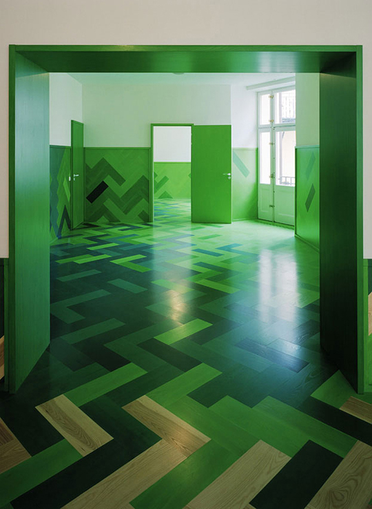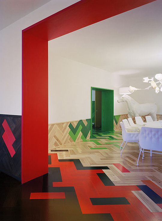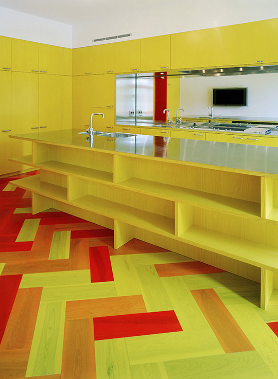 Считается, что в интерьерах с чрезмерно яркими красками сложно жить. Шведское архитектурное бюро Tham & Videgard Arkitekter решило это опровергнуть и разработало яркий новый дизайн квартиры в Стокгольме. Окна апартаментов выходят на парк Хумлегорден (Humlegarden). Архитекторы приняли за основу колорита сезонные изменения цвета деревьев в окне «с зимнего серого и черного к по-летнему яркому и насыщенному зеленому, затем осеннему красному и желтому». Пол и нижняя часть стен в комнатах обшиты деревянными планками, формирующими разноцветную мозаику. Интерьер получился очень ярким, но для Стокгольма, где солнца не так много, это скорее достоинство.