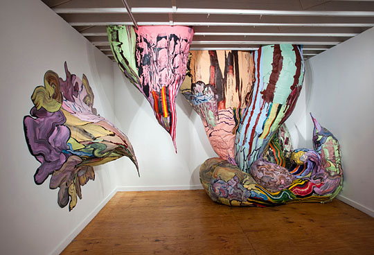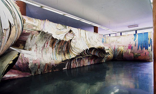 Его фантастические инсталляции, будто бы ворвавшиеся в здание галереи, призваны символизировать распад жизни в городе.
