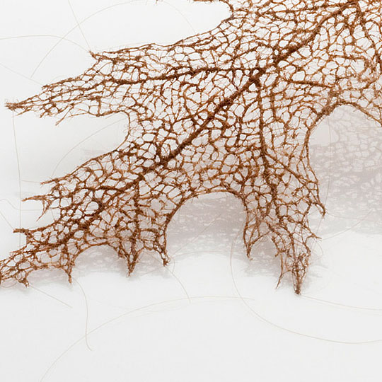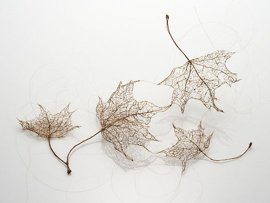 БлогиLifestyle Дженин Шереос: Листья 8 Февраль- Скульптор и дизайнер Дженин Шереос использует человеческие волосы как основной материал для своих работ — скрупулезно и тщательно сплетая и связывая между собой отдельные волоски, она создает листья деревьев в натуральную величину. [CUT]