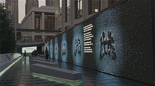 Нью-Йоркский Линкольн-центр открыл к началу учебного года интерактивную выставку, посвященную научному прогрессу. На улице и в выставочном пространстве центра установили большие экраны. Посетители могут посмотреть на них видео ретроспективу о главных научных достижениях человеческой цивилизации. Гигантским интерактивным экраном можно так же воспользоваться как сенсорным планшетом, чтобы получить информацию о любых человеческих изобретениях: от компаса до биосенсора. [CUT]