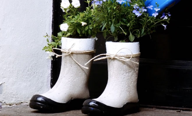Выливаем бетон в сапоги: украшение сада соседям на зависть