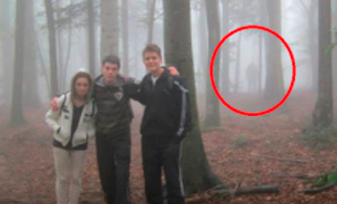 Группа друзей сделала этот снимок во время похода по лесам Йосемити. При распечатке на фото оказалась некая странная человекоподобная фигура — а туристы в один голос утверждали, что не видели ничего подобного.