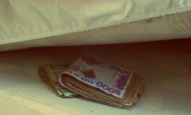 Под матрасом На полках в шкафах, под бельем В ящиках письменных столов В бачке унитаза На антресолях В холодильнике В банках из-под крупы В видео-аппаратуре и компьютере За ковром, зеркалом и обоями