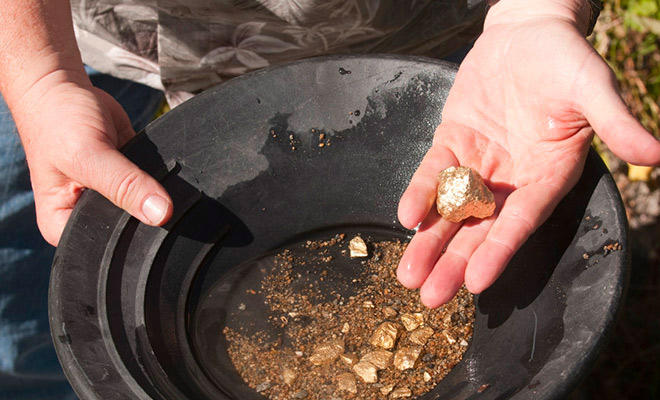 Несмотря на тот факт, что золотая лихорадка считается историей, золото из земли и рек никуда не делось. При знании места, можно как и в былые времена выйти с инвентарем и заняться намыванием желтого металла. Золотой песок встречается даже в Подмосковье, была бы лицензия старателя и желание найти металл.