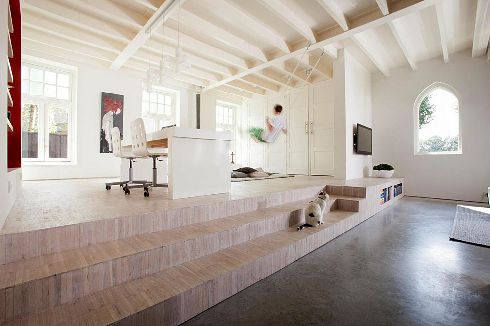 По проекту амстердамской студии LKSVDD, протестантская церковь 1928 года постройки была переделана в жилой дом с двумя жилыми ярусами и спальней в алтаре.