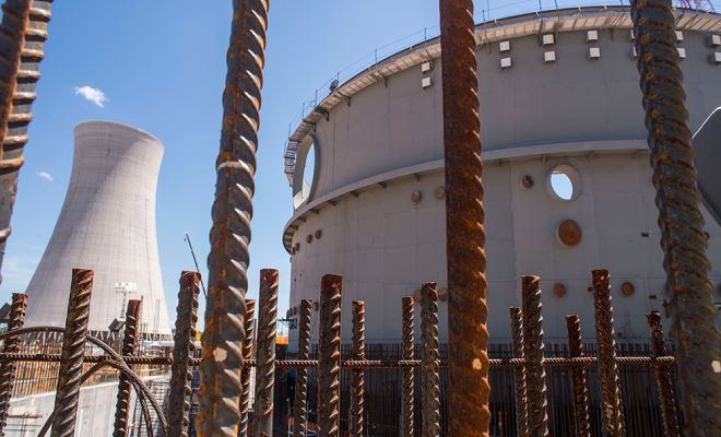 Укладка фундамента атомной электростанции. Бетонная плита внутри наполовину состоит из стальной арматуры