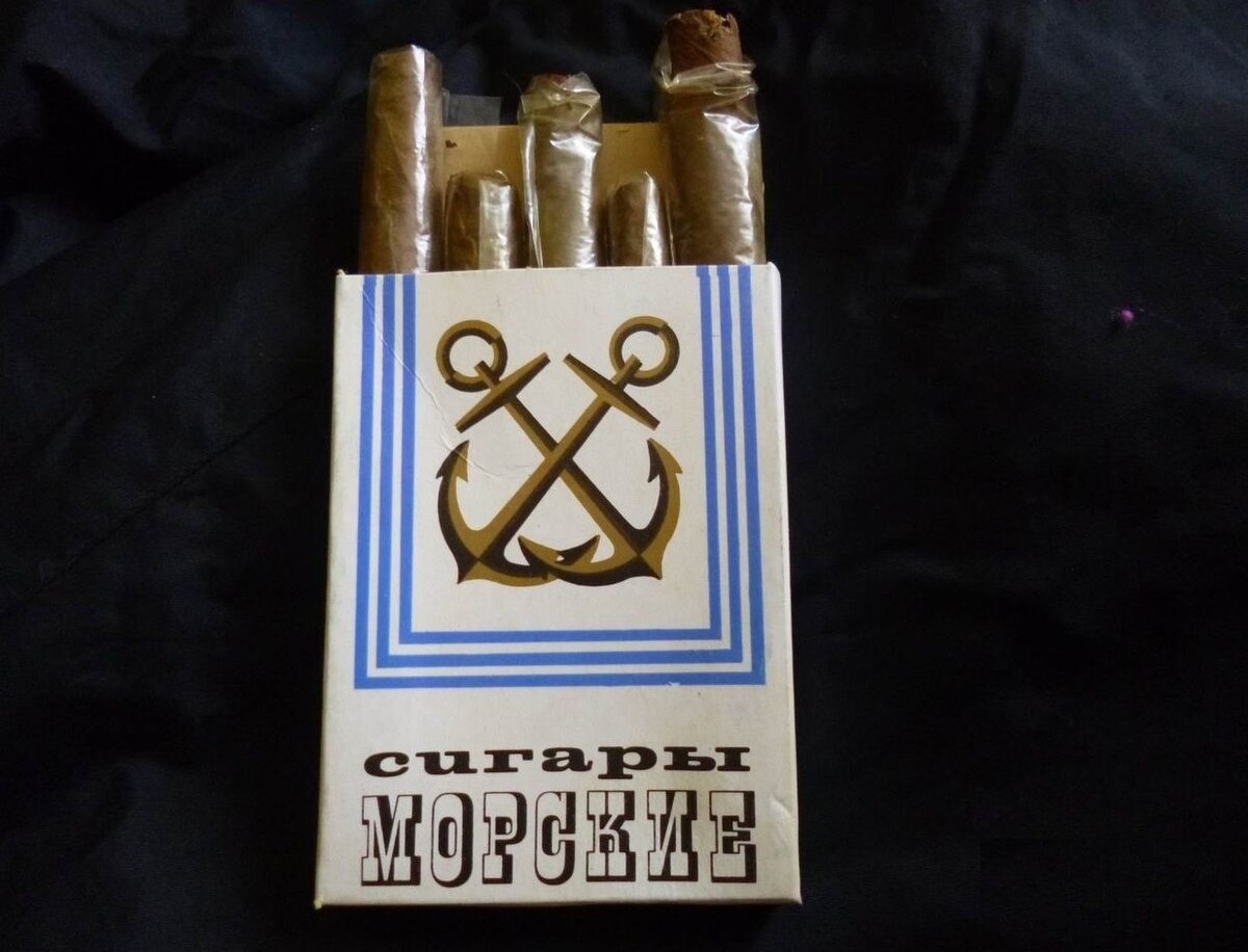 «Морские» сигары с якорями на упаковке стоили 45 копеек за 5 штук. Они были крепкие, с древесно-ореховым вкусом и ноткой земли. За 9 копеек за штуку это был выбор студенческих «денди».