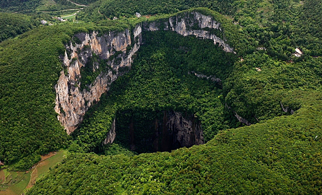 В Китае с самолета заметили провал глубиной 400 метров: на дне растет лес, изолированный тысячелетиями