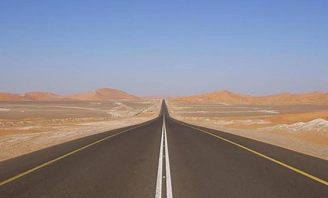 250 километров абсолютной прямоты пролегают через пустынные районы восточной Саудовской Аравии. Дорога соединяет город Харад на западе с восточной границей, ведущей в Объединённые Арабские Эмираты.