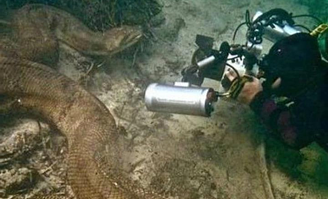 Дайвер с камерой нырнул в Амазонку и увидел на дне змею длиной с автобус