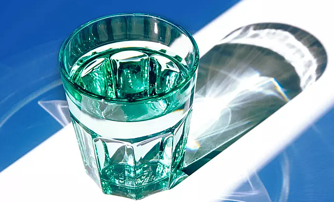 Этот визуальный трюк — пример простой, но впечатляющей оптической иллюзии. Всё дело в законах физики. Когда свет проходит через разные среды — воздух, воду, стекло — он изменяет направление, то есть преломляется. У каждого из этих материалов есть свой показатель преломления: у воздуха он близок к 1, у воды — около 1,33, а у стекла — порядка 1,5. Солнечный луч, попадая в стакан, отражается от его дна, частично преломляется на границе среды, и, при определённых условиях, создаёт визуальный эффект, будто вода меняет цвет.