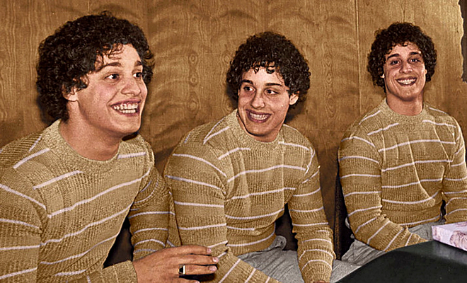 Всё началось, когда 19-летний Роберт Шафран пришёл в колледж и заметил странную реакцию окружающих. Его называли другим именем, улыбались, приветствовали, как старого знакомого. Вскоре выяснилось: в этом же учебном заведении учится юноша, выглядящий в точности как он сам — Эдвард Галлан. Парни выяснили, что оба были усыновлены и воспитывались в разных приёмных семьях, которые ничего не знали о наличии второго ребёнка.