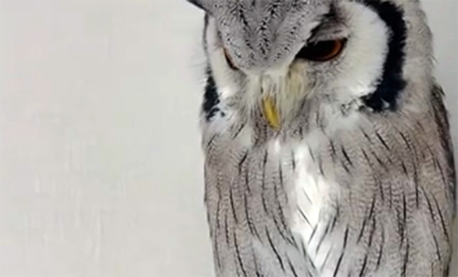 Сова увидела хозяина с новой стрижкой и не сразу его узнала. Реакция птицы на видео