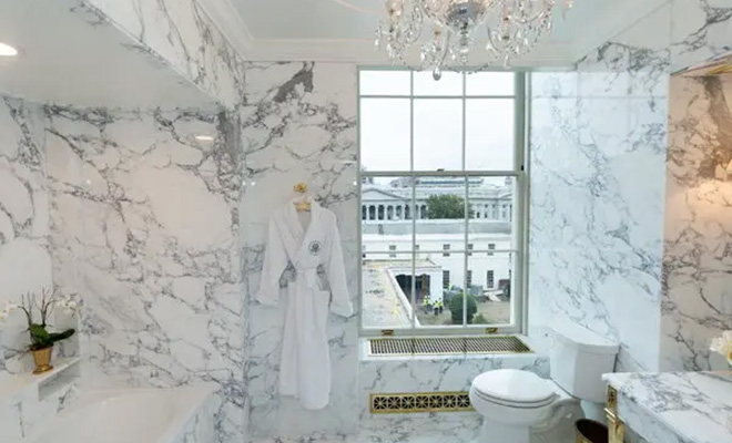 Дональд Трамп опубликовал фотографии обновленной ванной комнаты при спальне Линкольна в Белом доме, заявив, что «вернул ей исторический облик» и отделал помещение настоящим мрамором « для придания атмосферы XIX века».