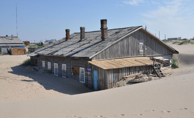 Среди Заполярья не только снега, но есть и настоящие пустыни. Деревню Шойна поглотили пески: дома уже наполовину под землей