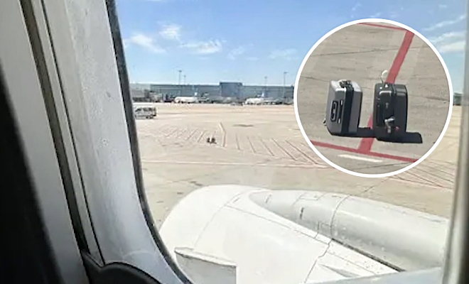 Пассажир заметил брошенные на взлетной полосе чемоданы, а через секунду понял, что там есть и его багаж