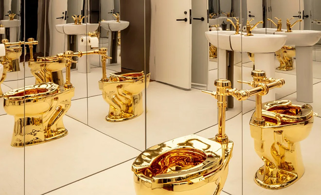 Не обошлось и без эксцентричных лотов. Знаменитый золотой унитаз Маурицио Каттелана, «Америка», стартовал с цены, привязанной к стоимости золота — 10 миллионов. Но вопреки ожиданиям аукционистов получил всего одну ставку, после чего стал собственностью музея. На фоне триумфа Климта даже этот предмет концептуального искусства выглядел скорее курьезом.