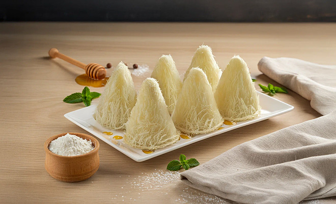 Этот традиционный десерт открывает список. Сладость представляет собой небольшие пирамидки, сделанные из тонких белых нитей муки, масла, меда и сахара. Несмотря на сложный процесс приготовления, включающий растягивание массы до волокон, иностранцы оценили вкус лишь на тройку.