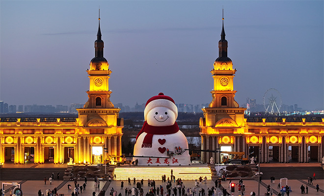 Огромный снеговик в Харбине