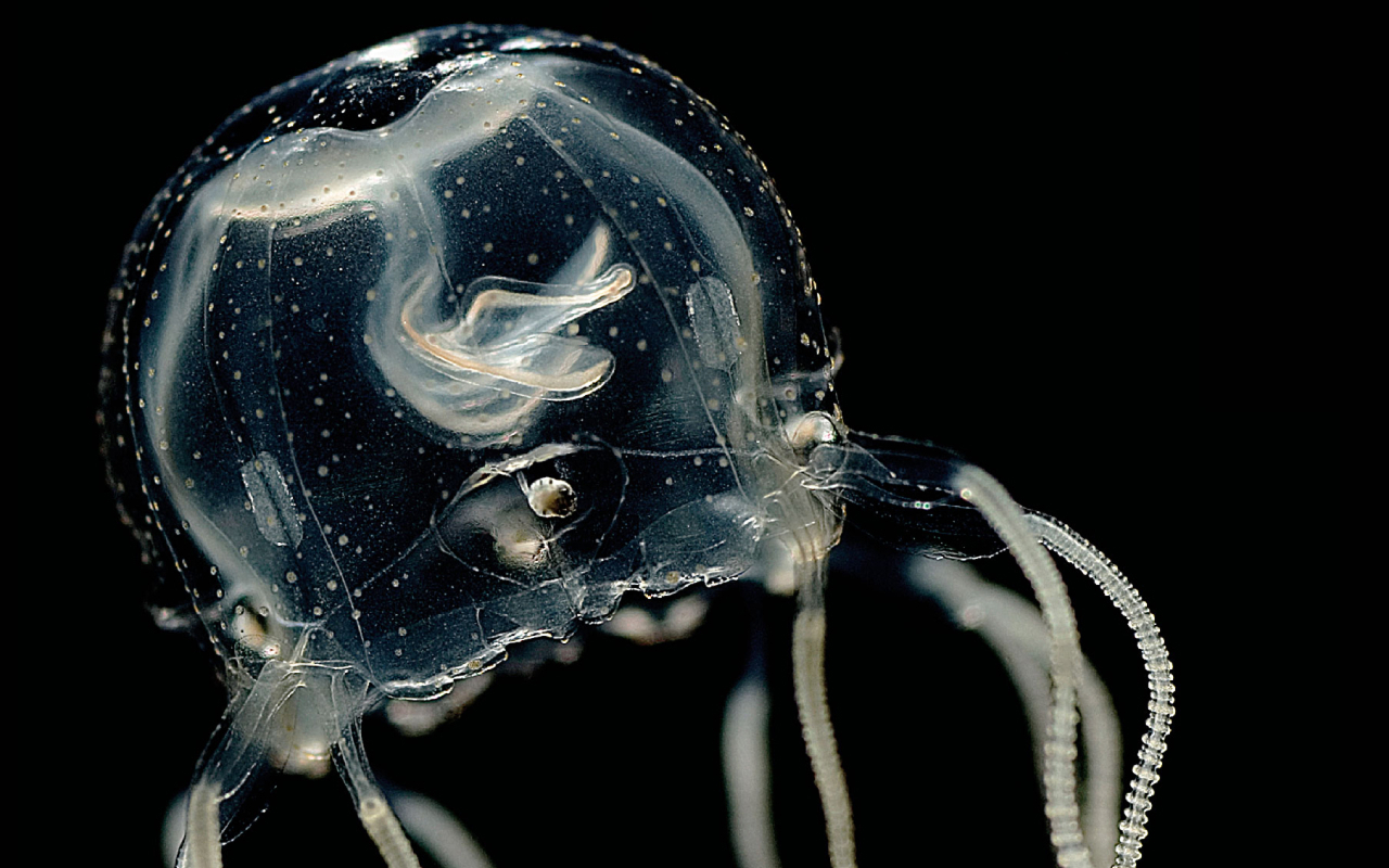 Ключевым объектом исследования стала небольшая карибская кубомедуза — Tripedalia cystophora. Ее размер не превышает ногтя человека, однако у нее довольно сложная для медузы сенсорная система: вокруг купола расположены 24 глаза, позволяющие ориентироваться в мутной воде мангровых лагун. В естественной среде эти медузы постоянно лавируют между корнями мангровых деревьев, где охотятся на мелких ракообразных. Столкновение с корнем может легко повредить их мягкое тело, поэтому способность вовремя уклоняться — вопрос выживания.