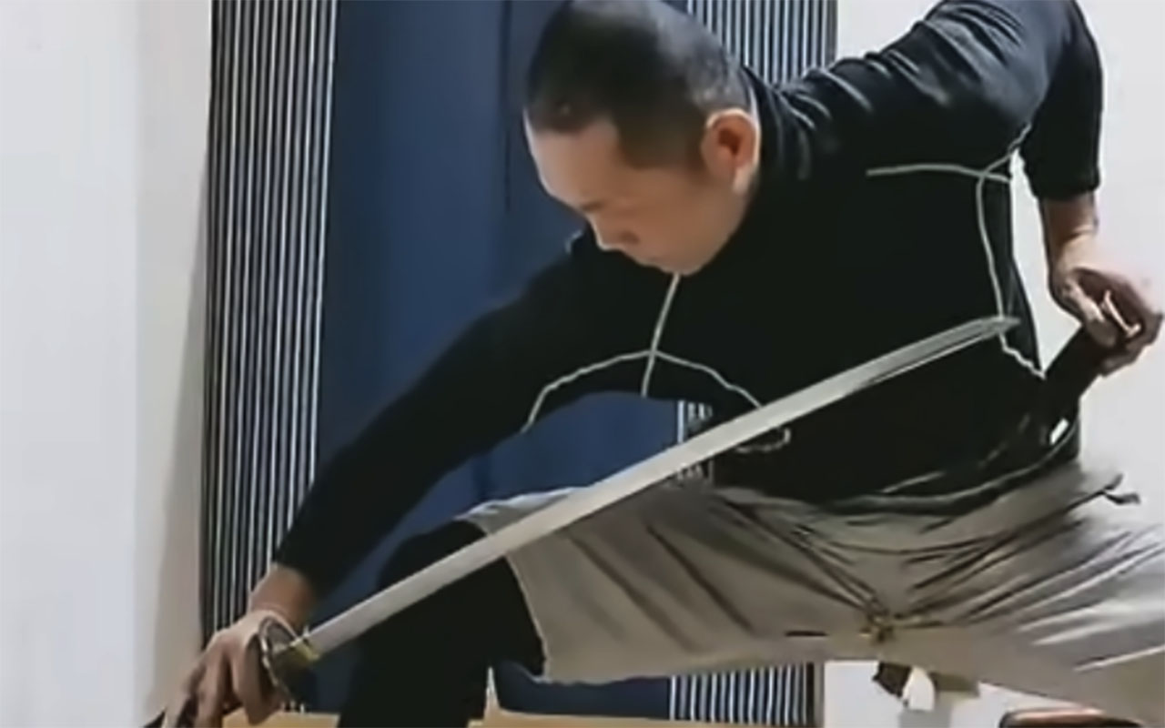 В японских боевых искусствах существует понятие «Сэйдза-но-бу» — формы борьбы из положения сидя. Однако мастер на видео демонстрирует еще более экстремальный сценарий: он сидит вплотную к стене, что полностью блокирует классическую траекторию выноса меча.