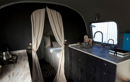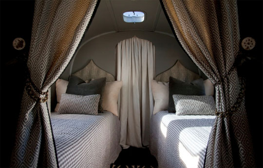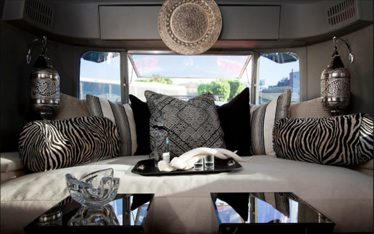 Футуристический Airstream можно без всяких скидок назвать трейлерной классикой всех времен и народов. Так же как и олдтаймеры, их почитают, восстанавливают и полируют. Один из таких аирстримов 1969 года выпуска попал к декоратору Рейчел Хорн и, как выяснилось, классическое обтекаемое покрытие из полированного алюминия отлично сочетается с драпировками, природным камнем и серебряным шитьем марроканского интерьера.