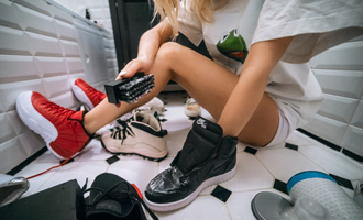 Часто мы возвращаемся домой уставшие и у нас совершенно нет сил на то, чтобы почистить кроссовки. Однако чем быстрее вы сделаете это, тем вам будет проще, ведь со временем грязь все глубже въедается в материал. Вооружитесь средством для чистки кроссовок, например, шампунем Solemate Cleaner, возьмите щетку с жесткой щетиной для подошвы, с мягким натуральным ворсом — для сетки, нубука и замши, с щетиной средней жесткости – для всего остального.