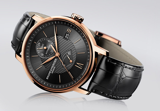 Гильошированный цифрблат элегантного черного цвета с позолотой, гармонично сочетается с ремешком из кожи аллигатора, также черным. Индикация времени на 24 часа и календарь. Сапфировое стекло, нижняя крышка прозрачная, что позволяет разглядеть часовой механизм, украшенный в стиле «Côtes de Genève» (под дамасскую сталь).